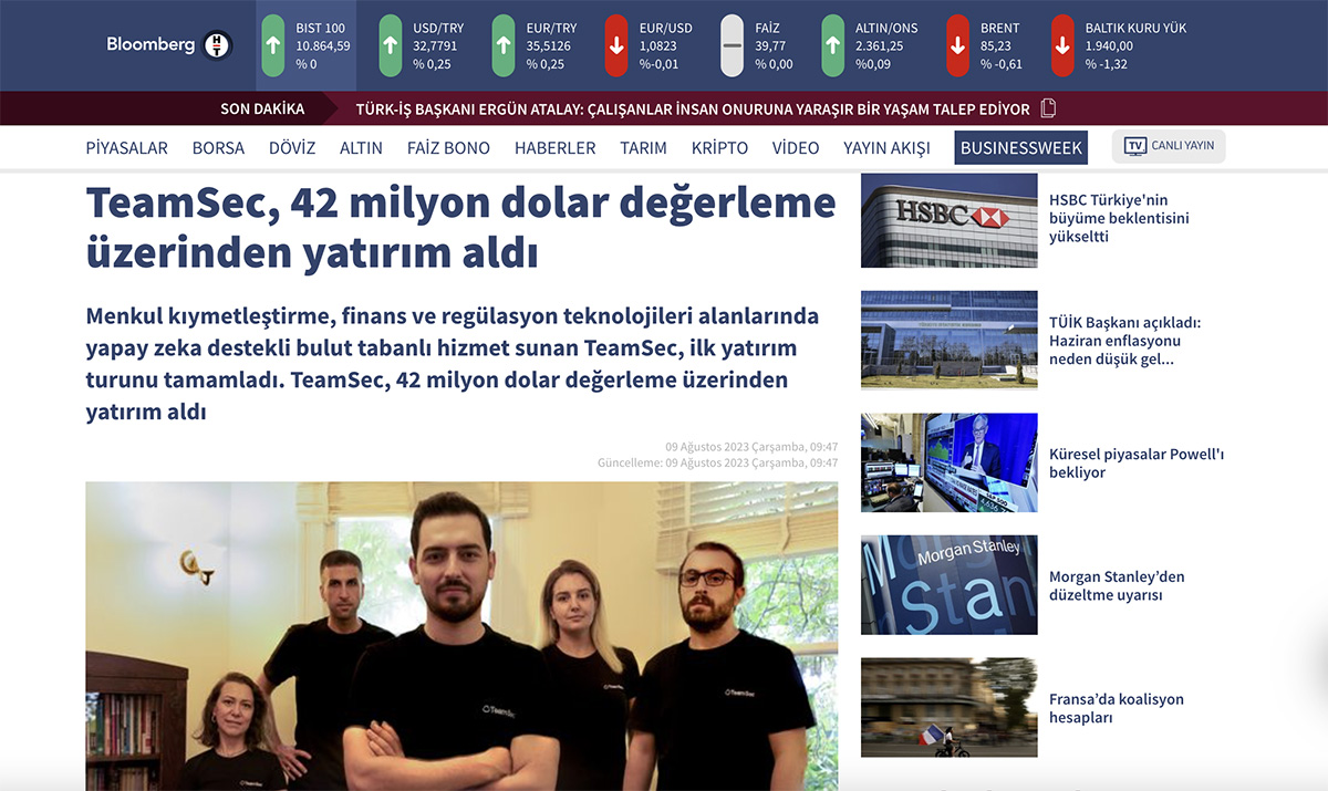 "TeamSec 42 Milyon Değerleme Üzerinden Yatırım Aldı" Haberi Bloomberg HT'de Yayında!