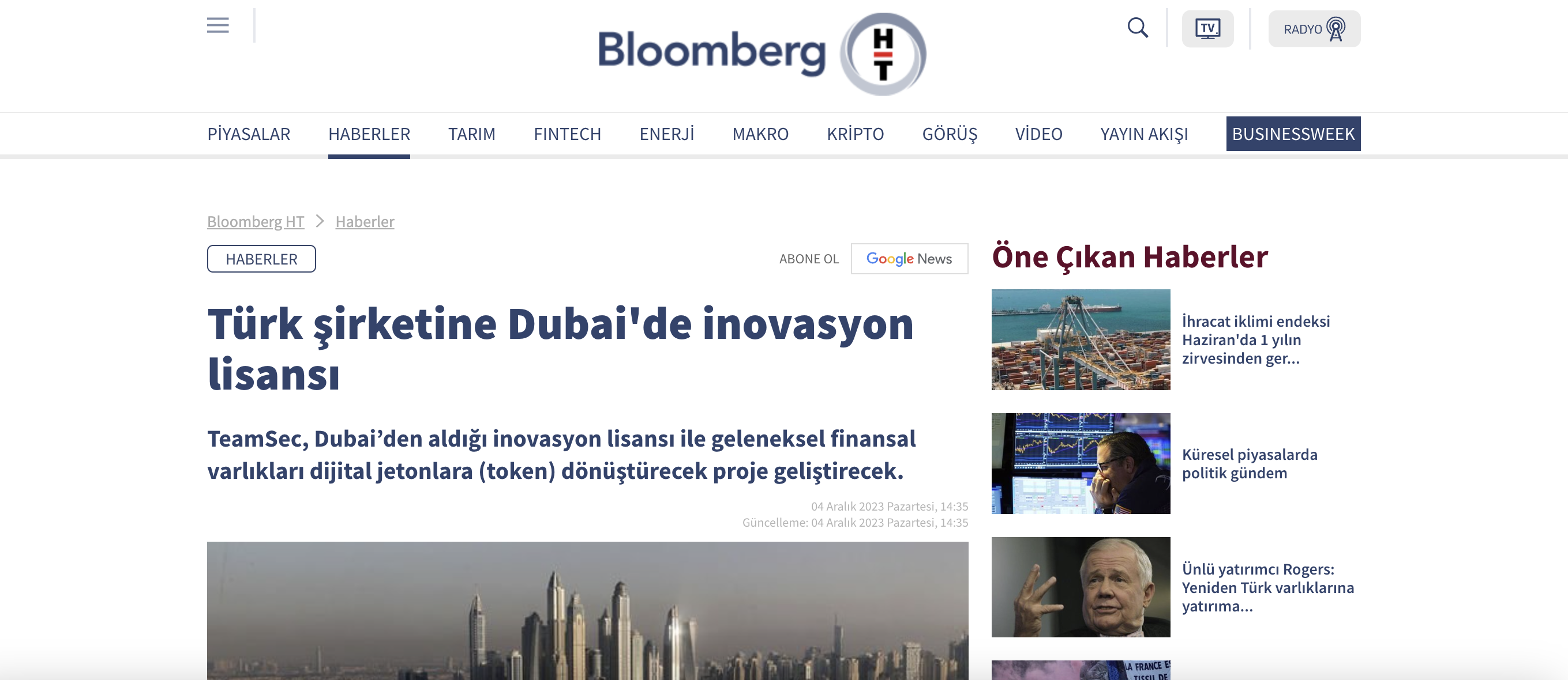 "TeamSec, Dubai Uluslararası Finans Merkezi'nden İnovasyon Lisansı aldı" haberi yerel ve ulusal medya kuruluşları ve web siteleri tarafından haberleştirilmeye devam ediyor. Haber detaylarını Bloomberg HT'de bulabilirsiniz.